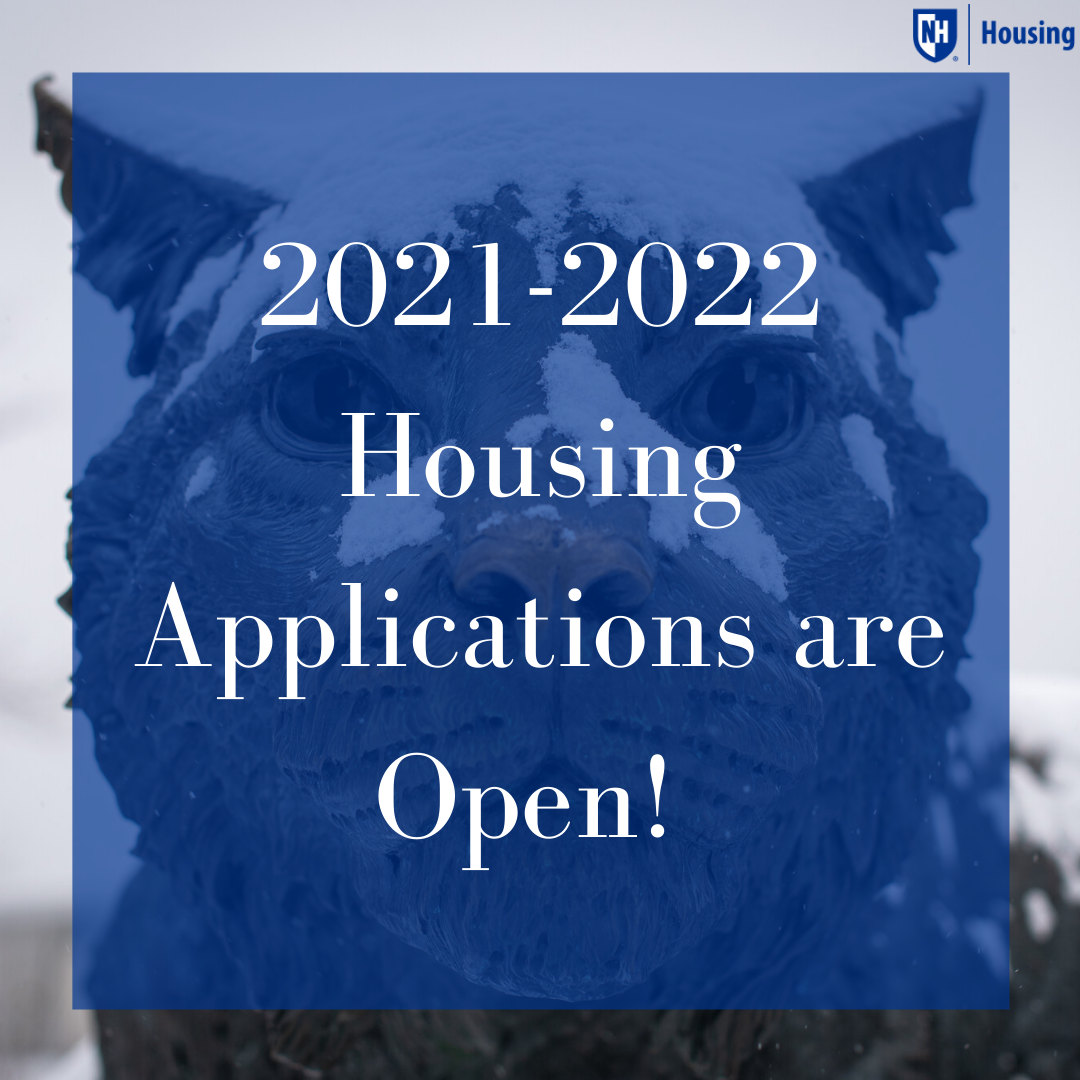 Friday, February 19, 2021 - 8 a.m. OnLine All students who want to return to on-campus housing for 2021-2022 must submit a Housing Application between January 25 - February 25 Event Details Contact Info Rowland, Christina christina.rowland@unh.edu 603-862-3469