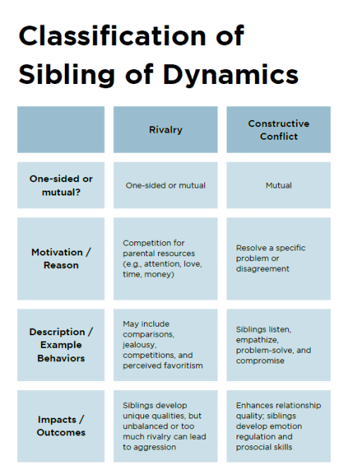 SHARE email facebook linkedin twitter pinterest October 28, 2025 File File classification-of-sibling-dynamics-handout.pdf (210.74 KB) Topics Positive Sibling Relationships Sibling Aggression and Abuse Sibling Rivalry and Conflict Sibling Sexual Abuse Types Tip Sheets & Handouts