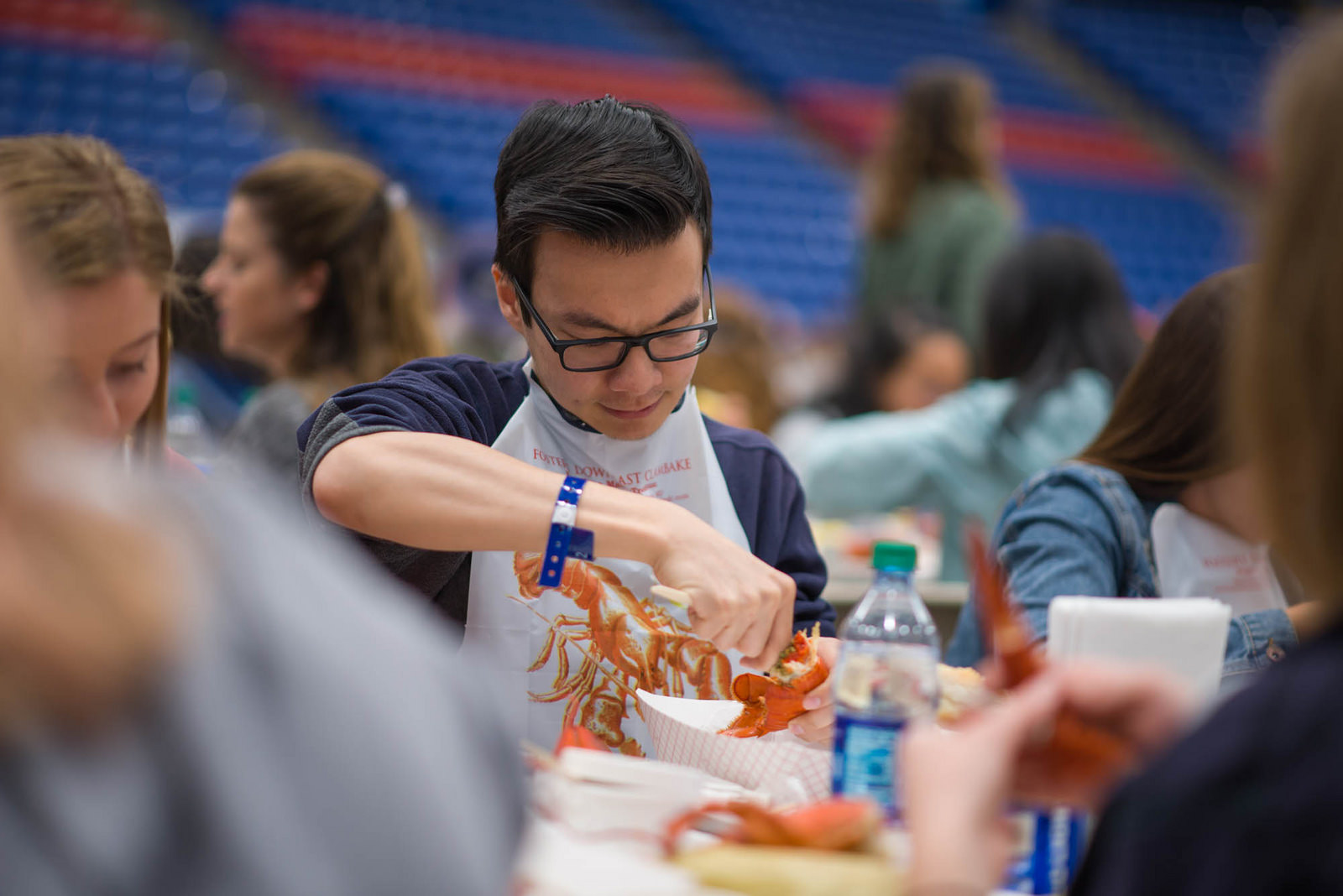 UNH seniors celebrating their impending graduation with classmates over lobster in the rough