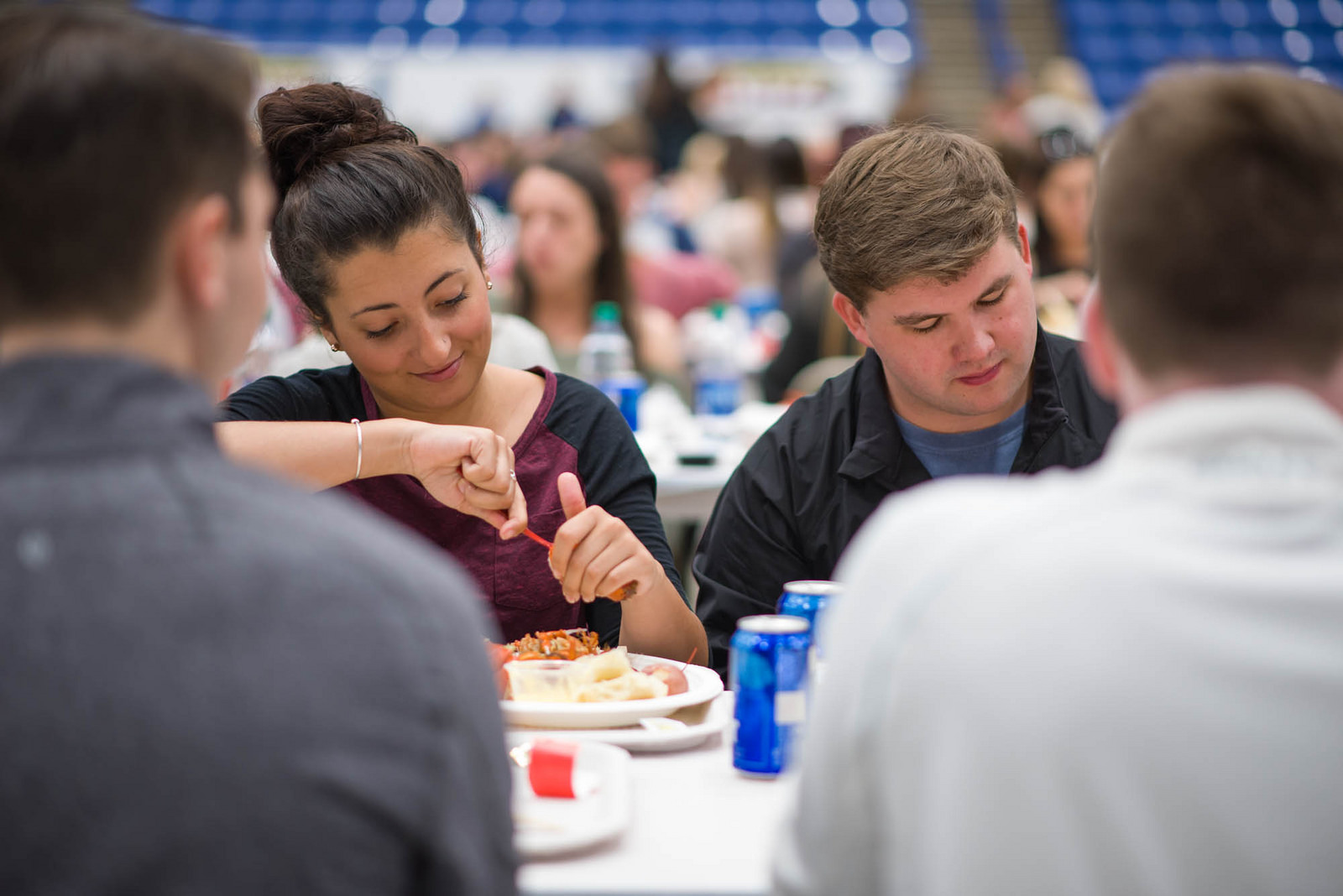 UNH seniors celebrating their impending graduation with classmates over lobster in the rough