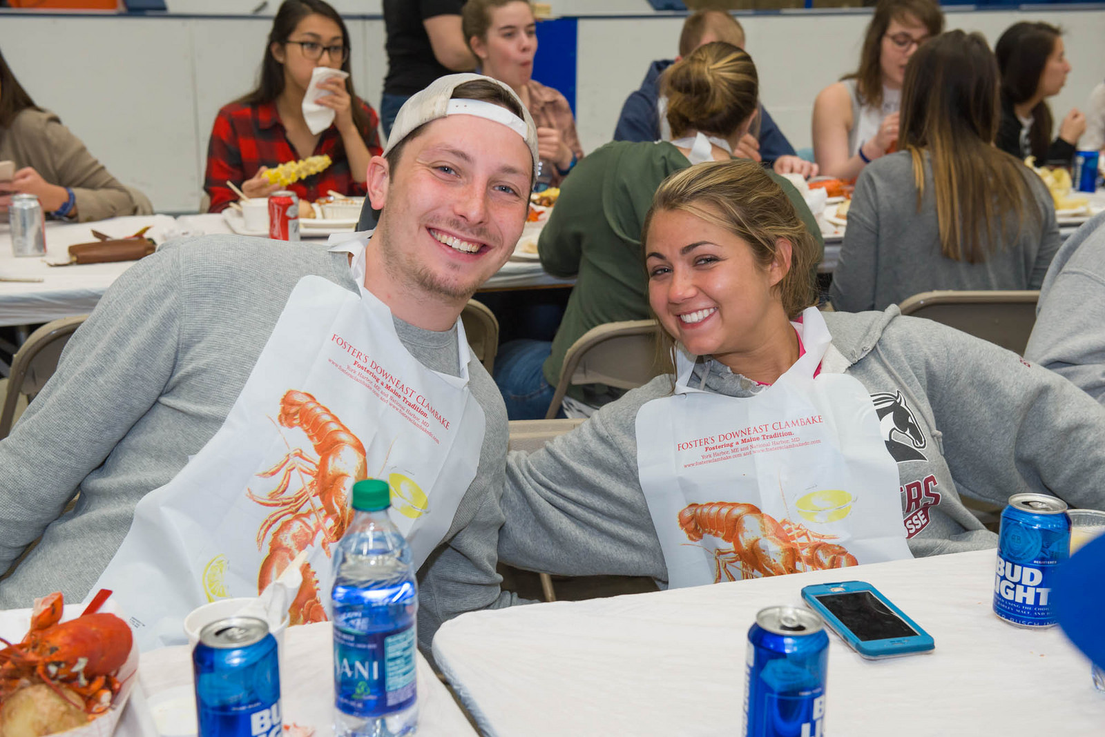 UNH seniors celebrating their impending graduation with classmates over lobster in the rough