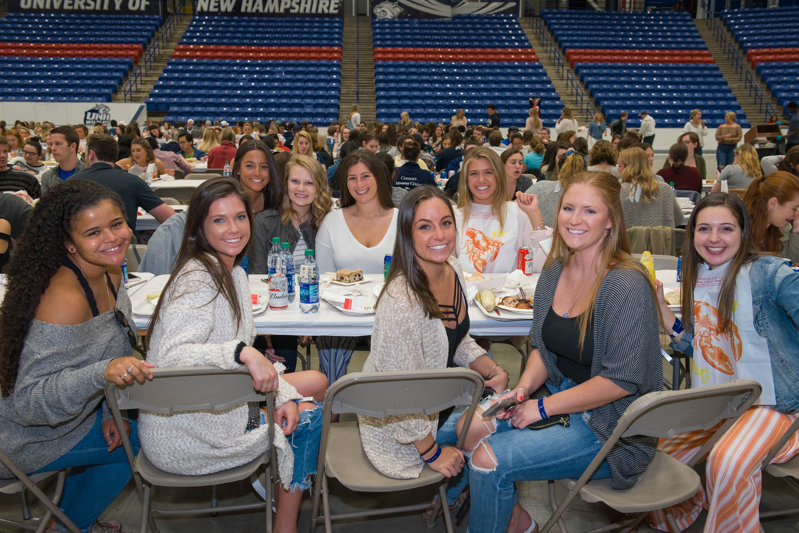 UNH seniors celebrating their impending graduation with classmates over lobster in the rough