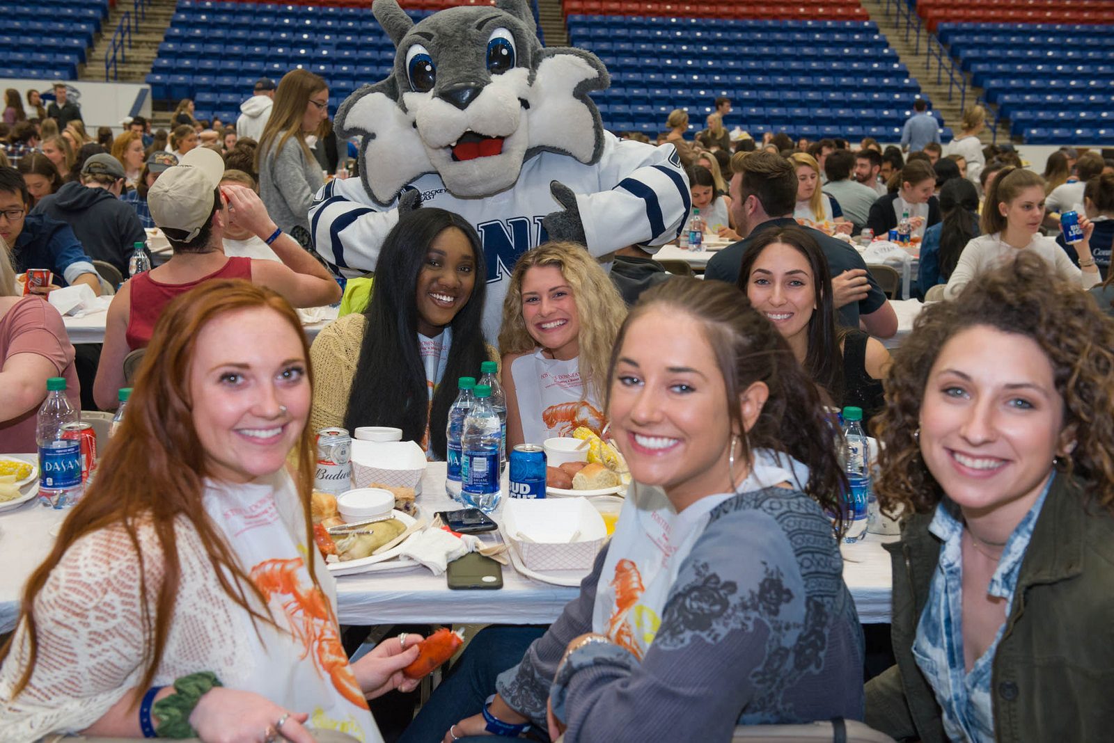 UNH seniors celebrating their impending graduation with classmates over lobster in the rough