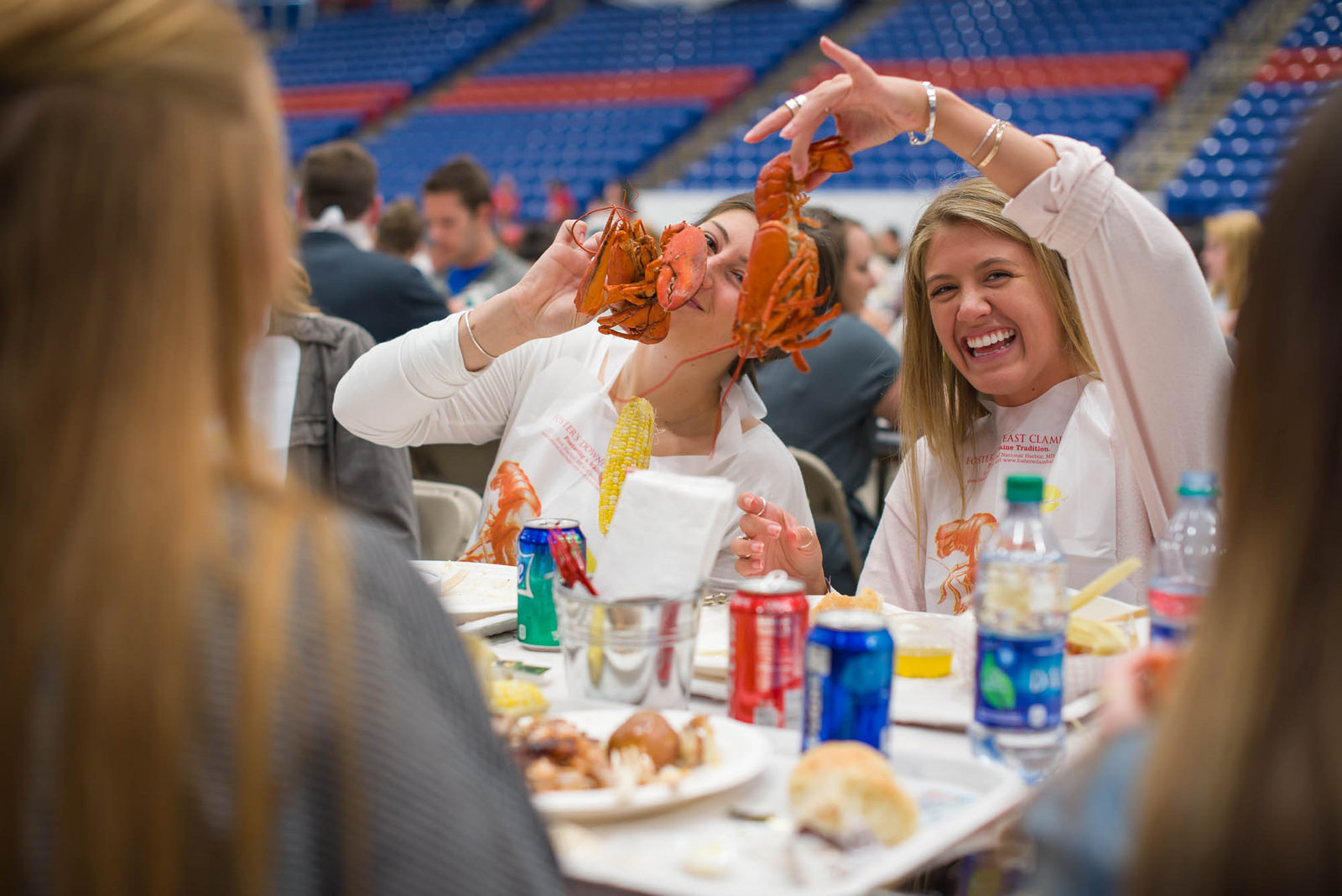 UNH seniors celebrating their impending graduation with classmates over lobster in the rough