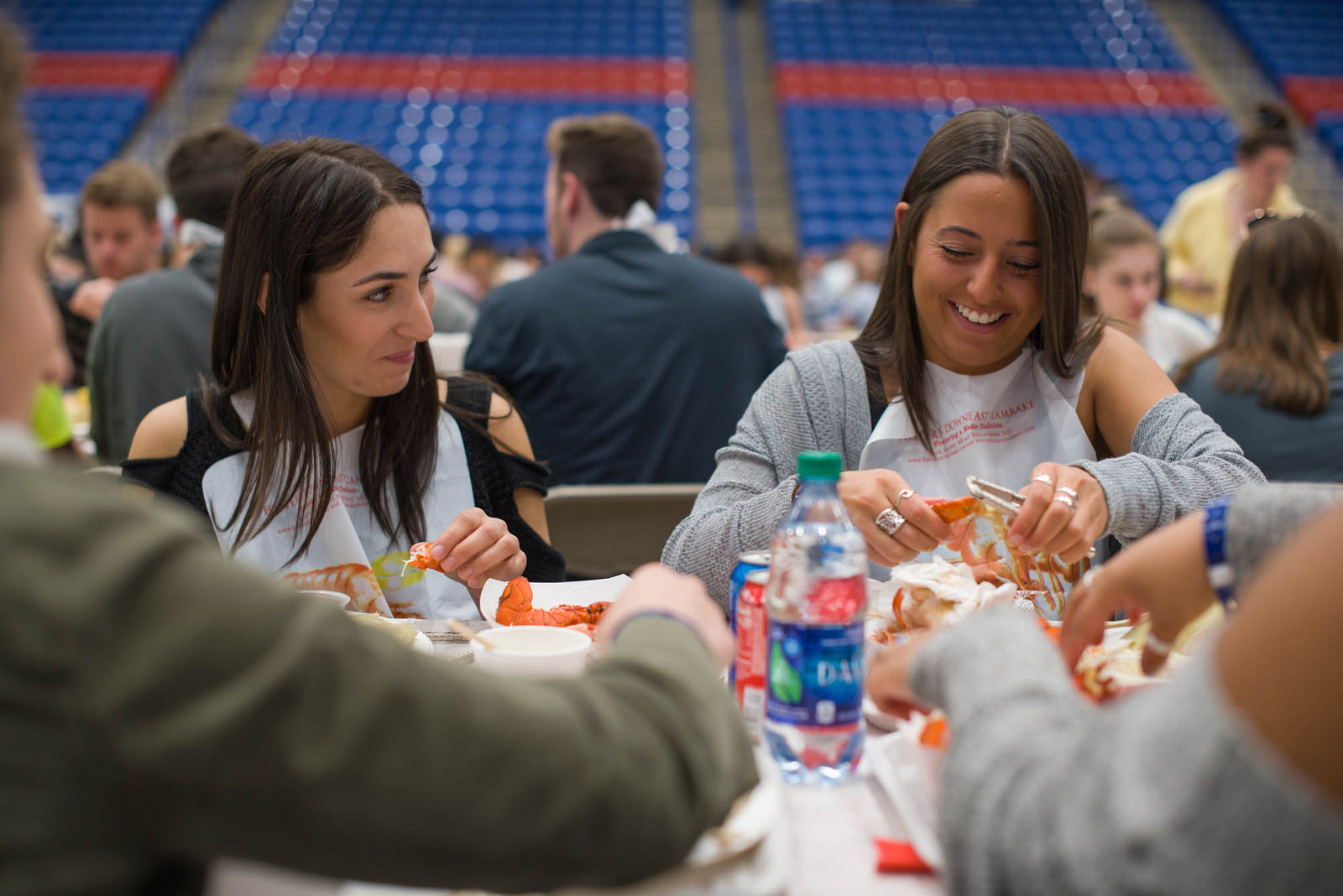 UNH seniors celebrating their impending graduation with classmates over lobster in the rough