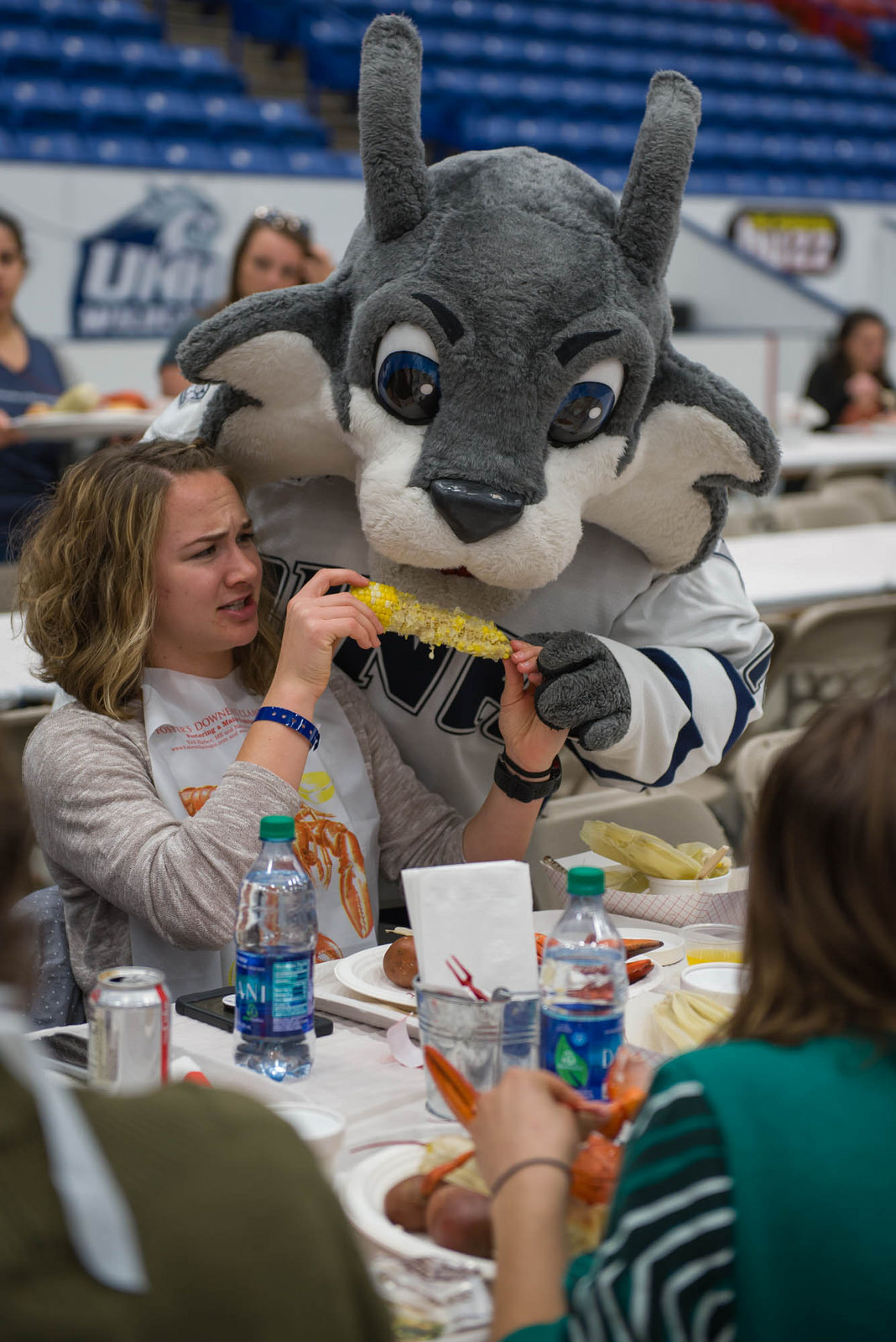 UNH seniors celebrating their impending graduation with classmates over lobster in the rough
