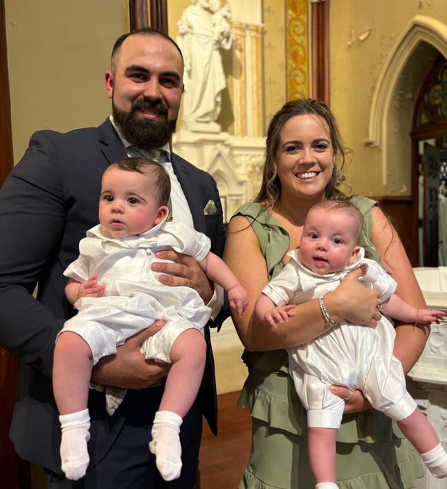 My husband and I met at UNH at Williamson Hall our freshman year in 2011. I actually spotted him in Philly the weekend before we officially met, and was already smitten. We have been together ever since, married in 2021 and have twin boys who are about to be 10 months old!