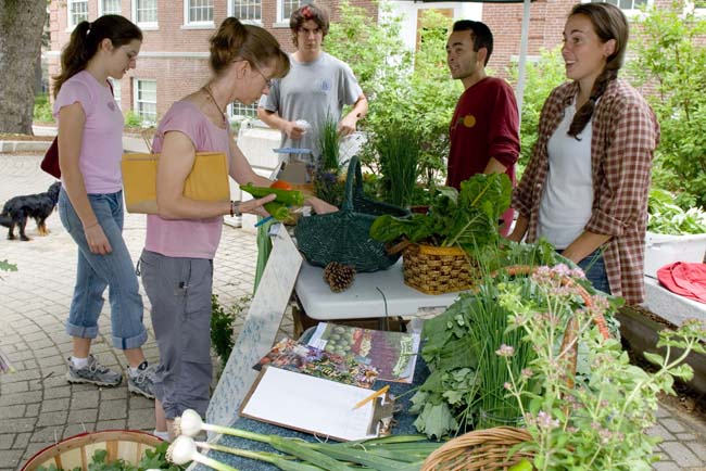 Caption: University of New Hampshire students in the Organic Garden Club operate a weekly farm stand on campus.