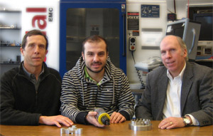 UNH mechanical engineering professors Barry Fussell (left) and Robert Jerard (right) with graduate student Firat Eren are working together to develop "smart" machining systems in the Design and Manufacturing Lab. Courtesy photo.