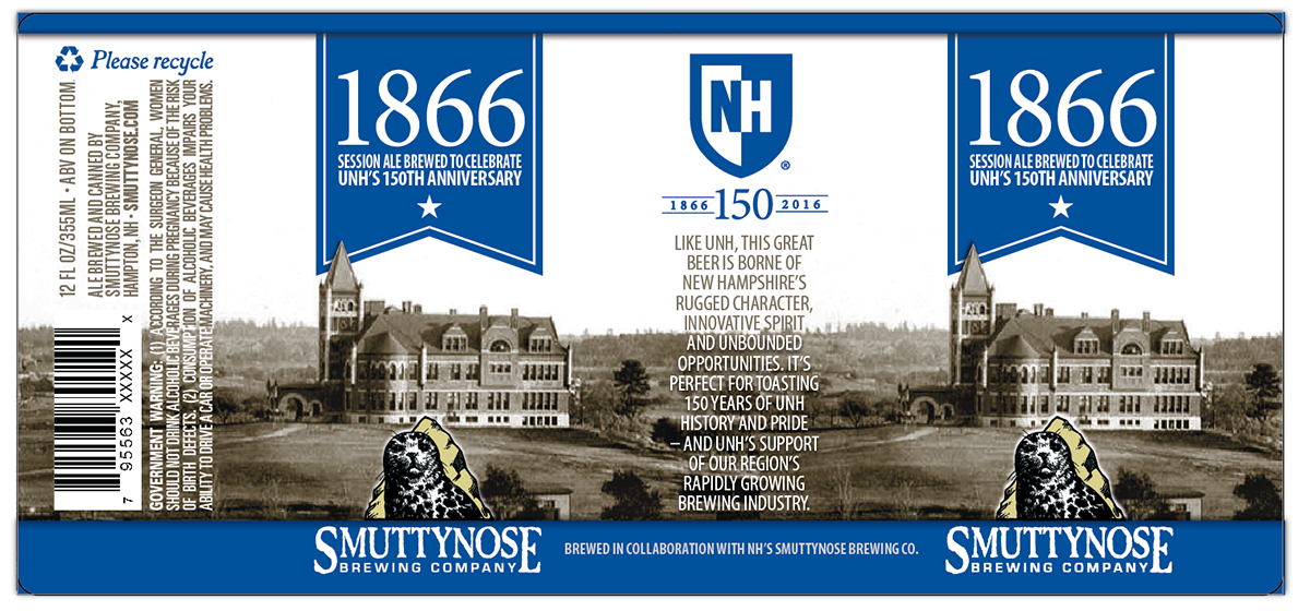 DURHAM, N.H. – Smuttynose Brewing Company and the University of New Hampshire have partnered to brew a session ale to celebrate UNH’s 150th anniversary. Called 1866 (the year UNH was founded), the session ale will be for sale and on tap at numerous locations throughout the Seacoast beginning March 13.