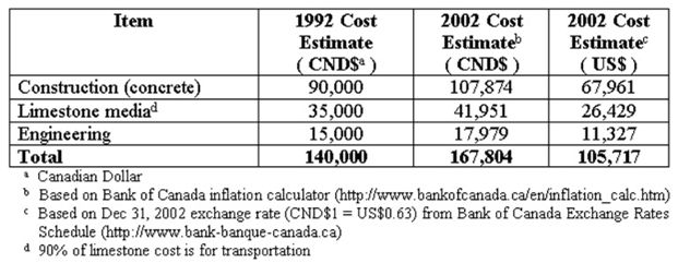 Table 9. Estimated Cost of Limestone Contactors in Port Simpson, British Columbia (Benjamin et al., 1992)
